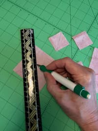 - Lightly mark diagonal lines on each pink 1 ½” square and on each pink 3” square.
