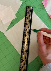 This will go into the seam allowance when attaching the borders. Press and trim. If necessary, slightly trim bottom to make it straight. - Now carefully measure and trim the top edge to make it 12 1/2” tall