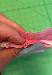 If you pressed the center seam of the smaller heart to one side, then press this center seam to the opposite side. This will reduce bulk and make matching the centers easier.
