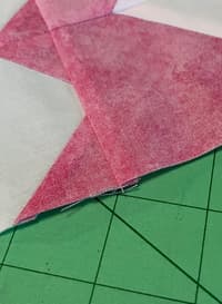 Sew the diagonal seams, to make the top “V” of the big heart. Press and trim.