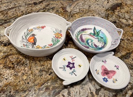 Learn secrets on how to sew through cotton cording and how to adjust your machine for a perfect stitch, then embroidering on the bottom of the basket to make a perfect gift. Lots of tips and different ideas to make each one unique. All you need is cotton clothesline and a simple design to download on your machine. You will be hooked on how fun it is.