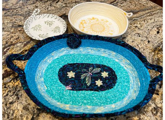For those who have mastered the basic rope basket class this class will move you up to the next level. You will learn how to wrap with scraps of material, decorative thread or yarn and use stitching with colored thread. In addition, you will learn how to create an oval basket and make different handles. There are many clever options for ending the bowl that will be shown. So much creativity to make a totally unique basket! They make great gifts and are fun to make.