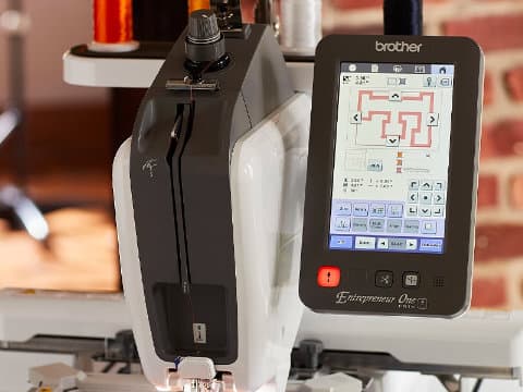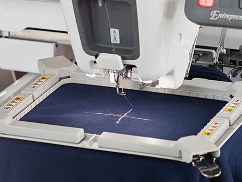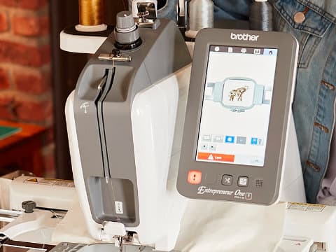 The Entrepreneur One PR1X Single needle embroidery machine has free arm embroidery to easily reach areas like caps, sleeves, and bags and an automatic needle threading system so you can quickly spool your needle.