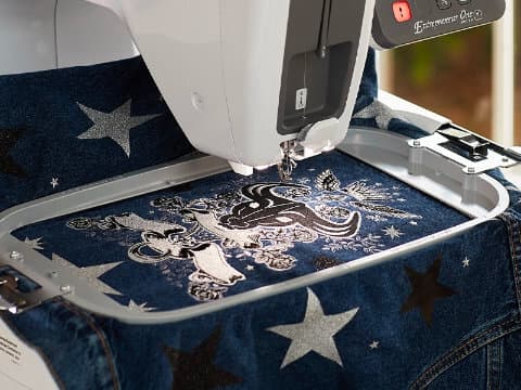 Save time with the Vertical Bobbin for easy bobbin changes without removing your hoop and the Side Bobbin winder so you can wind a new bobbin while the machine is embroidering.