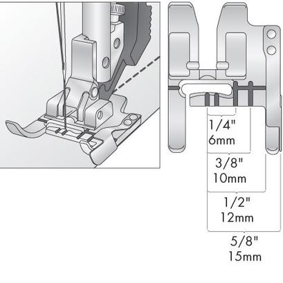 - Use the 4 other red markings on the presser foot for a narrower seam allowances.