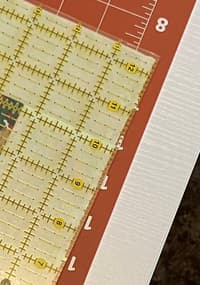 - From this, cut two 2.5” squares and one rectangle 2.5” x 6.5”.