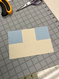 Sew the 1.5” by 6” rectangles to each side of the cone assembly. Press the seam allowance outwards and trim to match the cone’s height.