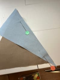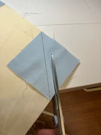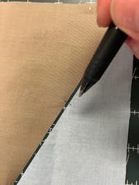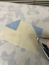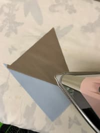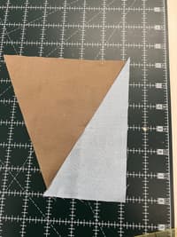 Line up the raw edge of the cone with the diagonal edge of the 3.5” by 6” background triangle. Make shallow marks in the middle to help line them up.