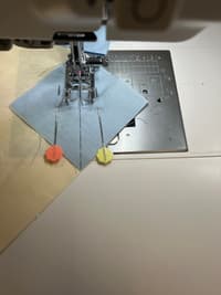 - Sew diagonally from corner to corner on each square.