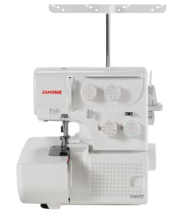 If you're looking for a great quality but lower priced serger, the Janome 8002D is a great contender. It's a basic 4-thread serger with color coded thread guides, differential feed, and built-in rolled hem capability.