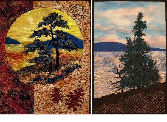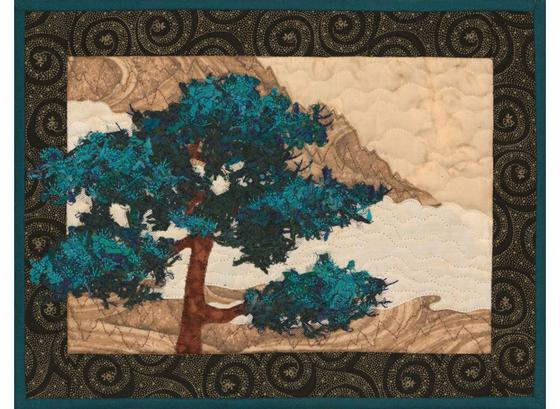 With any landscape, rendering the trees and foliage can be both challenging and rewarding and provides an opportunity to be creative with shape and texture. This technique creates a slightly textured surface and is perfect for foliage and other ‘frothy’ natural elements like crashing waves or the burbling foam at the bottom of a waterfall. The ‘confetti’ technique makes particularly lovely trees that are more complex, lacy and delicate than ordinary quilting techniques are capable of. The method is remarkably easy and needs only rudimentary free motion stitching skills.
