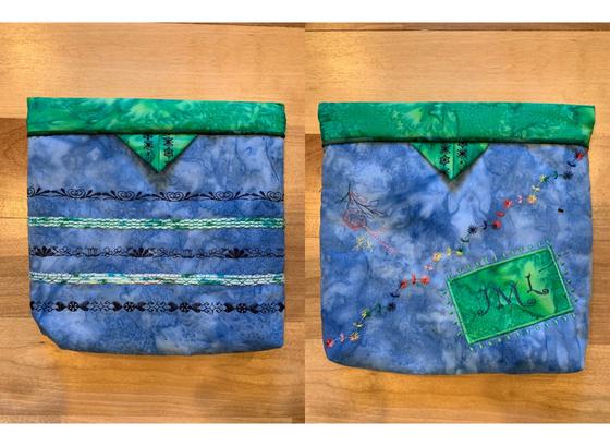This cute snap bag with no raw seams is great to hold all those little sewing items and other miscellany. You will learn to use the decorative stitches in your machine to create a sequence or create your own stitches. You will also learn how to use your yarn foot or trim foot to make colorful trim on the bag as well as using your piping foot to make your own piping. Then put the bag together all lined and beautiful on the inside. The clever snapping enclosure makes opening it so easy.