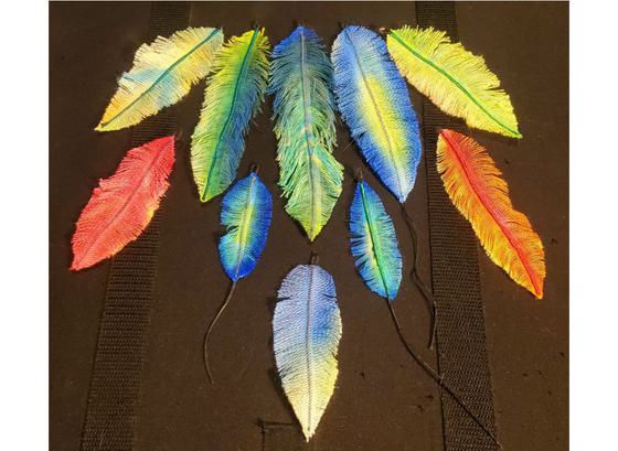 These ‘feathers’ are easy to make and amazingly realistic. You can make them from leftover scraps of denim or recycled worn out jeans or other heavy woven fabrics. Some upholstery fabrics – particularly tapestry types – make gorgeous feathers as long as they are heavy enough and fray well. Your feathers can be used to embellish other projects or strung to make into jewelry, dangle from a purse or bag and even used as a unique scissors fob to identify your scissors at a class or workshop. You might even decide to ‘Feather Your Vest’!