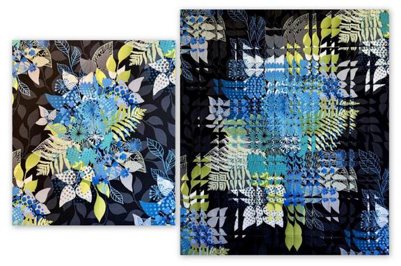 It’s easier than you think to “fracture” an image, creating a ripples-in-a-pond effect using four repeats of fabric. The magic is in the cutting and arranging of squares, and I will guide you in the process. Project size varies. You can make a small wall hanging or incorporate your fractured image into a larger quilt.