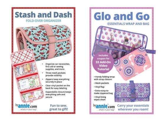 This class (two sessions, 3-hours each) offers you the choice of making either the Glo & Go or the Stash & Dash, both are byAnnie Patterns. Both projects feature clear 12-gauge vinyl, mesh, an expandable strap closure, making and attaching bias binding.