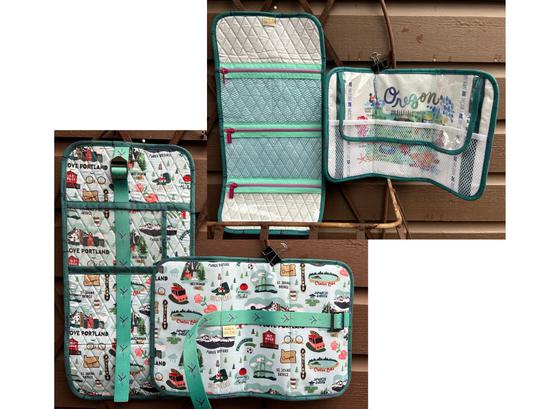 wrap with strap closure and coordinating zippered bag make it easy to store and organize all your essentials in style. Iron-on