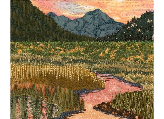 This class is designed to assist you in quilting your landscape or pictorial quilt. The focus will be choosing suitable quilting patterns or designs for your individual quilt and then quilting it on your domestic machine. This is not a beginning quilting class, some familiarity with the basics of machine quilting is recommended. That said, quilting landscapes is more forgiving for a novice than more traditional quilting. If you have not done any machine quilting before, you may want to take a basic machine quilting class as a prerequisite to this one. This class is aimed at quilting a smaller quilt but if you have any landscape quilt you are ready to quilt, you may bring that project, you will probably not get your project completely done by the end of the class, but you will leave with the quilting well on the way and a clear plan of how to finish it.