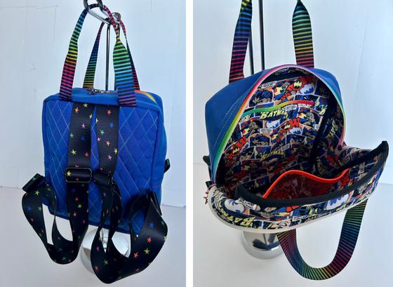 MAKING BACKPACK: The square shape is easier to construct, front slip or zippered pleated pocket, adjustable shoulder straps and useful top handles. The interior has a zippered pocket and optional interior mesh pocket, Lining is sewn to outside and seams are bound on the inside of the bag with cross-grain binding.