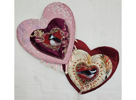 History and literature are full of stories of great lovers, some of whom had to pursue their assignations in secrecy. Love notes and mementos would be passed discreetly or tucked into clandestine places known only to the lovers. Celebrate this Valentine's Day by creating a lovely embellished heart-pocket quilt to tuck sweet messages, chocolate bars, or gifts for that special someone. The pockets can be custom-made to fit the gift of your choice. Why give a paper card when you can give a keepsake made with love? If you want a smaller project, this technique can be used to create a small pouch to wear around your neck to tuck bank cards or ID, a key, or a bit of cash into. You could also make and apply a heart-shaped pocket to a garment. Forget a disposable card, give your beloved a heartfelt keepsake they will treasure for years to come.