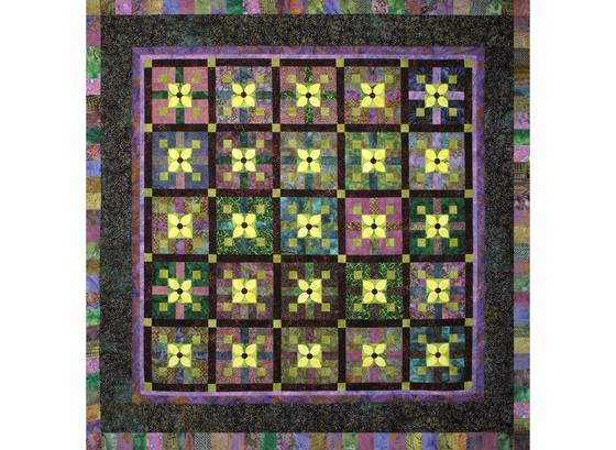 This is a simple yet elegant quilt. The pattern, that I designed for Story Quilts, makes a throw-sized quilt but you can increase or decrease the number of blocks to make the quilt in any size you desire. The design is particularly well suited for a scrappy presentation utilizing fat quarters or 12” scraps, making it a great stash-buster quilt. The Dogwood flowers in the center square can be hand or machine appliquéd as desired or choose a novelty floral print that has 2” flowers to fussy cut for block centers and forego the appliqué. Made in Christmas colors, these blocks change character and look like gift wrapped packages with bows instead of flowers. Skill Level: Confident beginner