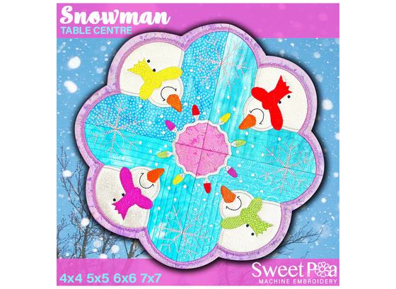 Designs for the 4x4, 5x5, 6x6 and 7x7 hoops are all included. We will be making the 5 x 5 size in class. The table center takes four hoopings and the blocks are joined with your sewing machine. The backing is then attached with your sewing machine. There is about 8cm (~3") of hand sewing or gluing required.