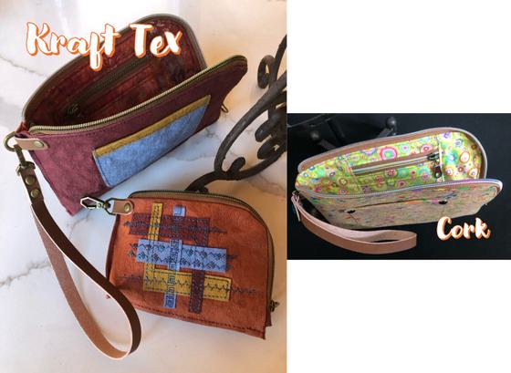 This class offers two small, zippered bags in one pattern. Both have fun details that elevate appeal and make great gifts! Both are sewn with a straight stitch, lined, incorporate sewing a zipper & multiple types of pockets. Choose to make one in class. Jayne will introduce techniques for working with materials such as: Kraft-Tex, Waxed Canvas, Faux Leather & Cork. These projects also could be made from upcycled products you don’t use anymore such as jeans, belts, upholstery, etc.