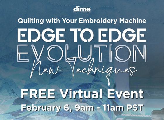 Edge to Edge Evolution features updated techniques and new products for quilting with an embroidery machine. This virtual event highlights the unique collaboration of DIME and Amelie Scott Designs. Amelie Scott Designs perfectly complement DIME’s quilting and embroidery tools. You’ll be amazed how easy it is to finish your quilts with Amelie Scott Designs’ gorgeous quilting designs. You’ll be inspired to turn your quilt tops into finished quilts.