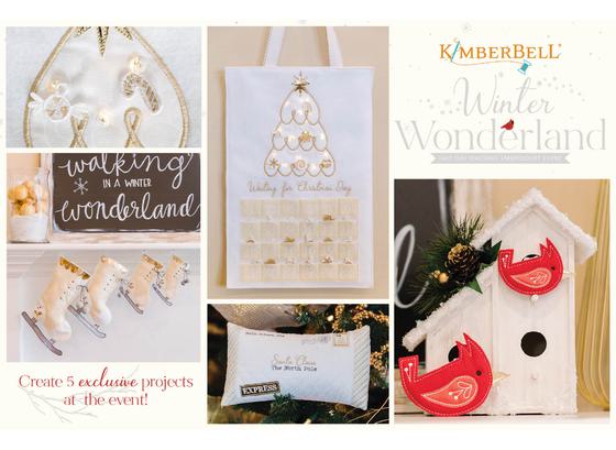 Discover a Winter Wonderland, Kimberbell’s two-day machine embroidery event! In this event, you'll work on five elegant holiday projects: