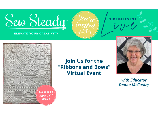 Learn to quilt amazing DM Quilting and Westalee Designs and receive the Ribbons and Bows Galore Quilt Pattern by DM Quilting. Get ideas on how to create a quilt similar to this with designs you already have in your collection or add to your collection with tools used in class. Win Prizes, Get Event Special Pricing, and Learn! Class fee is $20, but includes the $30 pattern!
