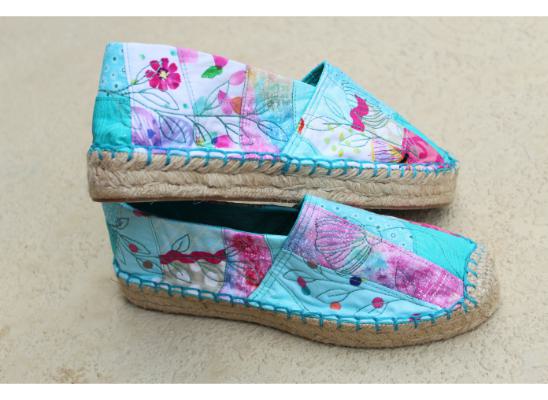 Learn how to make your own pair of very special Quilted Espadrille shoes inside your embroidery hoop! Join us and Zandra Shaw for this live video event that you can attend from the comfort of your own home. All you need is the project kit, an embroidery machine with a hoop size of 6" x 8" or larger, and your own pieces of scrap fabrics (9 different pieces of fabrics in size 6"x12", and 1/3 yard lining). Just pick your favorite fabric scraps to create your own unique shoe!