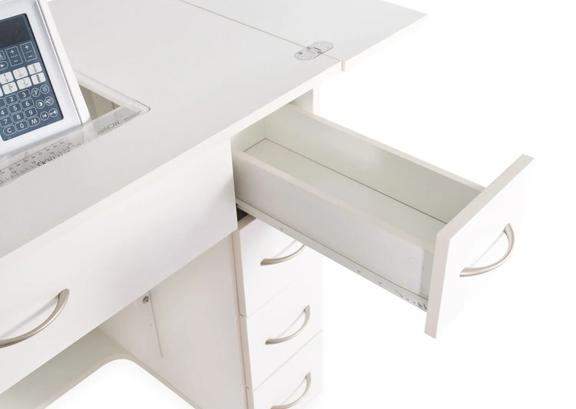 - 4 drawers on cabinet’s right side to store notions and accessories