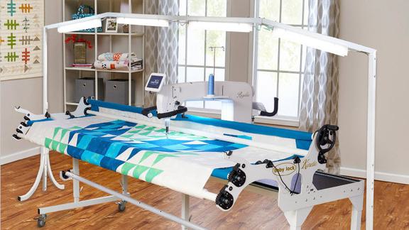 The Baby Lock Light Bar features a special True Color balanced lighting system that's perfect for artists and crafters to reduce glare and soften shadows, while enhancing details and textures. Can be resized to fit most any quilting frame, cutting table or work area. A 2-foot extension is also available (does not work with 5-foot bar).