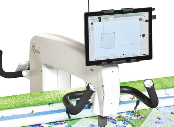 - 12" (30mm) color touchscreen computer mounts onto a stitch-regulated quilting machine
