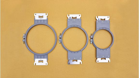 Round hoops are perfect for embroidering in hard to hoop areas or round shaped designs. Set includes 4", 5" and 6" round hoops and Alliance frame holder C.