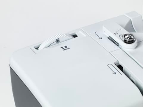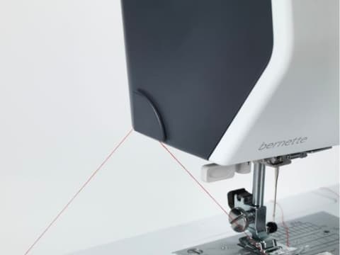 When you get to the end of a seam, the thread has to be tied off to prevent the seam unravelling. Normally, you would do this by making a quick backwards and forwards stitch. This is no longer necessary with the bernette 38, as it has an automatic tie-off function. Simply select the Tie-off button and the end of the seam will be tied off automatically. When you have finished your sewing project, press the button for the automatic thread cutter and you can pull your completed work out from under the needle without having to reach for the scissors.