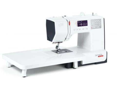 The extension table supplied with the bernette 38 is easy to attach and detach, and gives you more space for large sewing projects such as clothes, quilts or curtains.