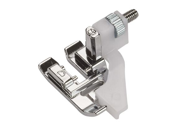 The Blindstitch Foot for Dual Feed features a recess on the rear side of the presser foot to activate the integrated dual feed. This ensures a consistent feed with difficult-to-feed materials.