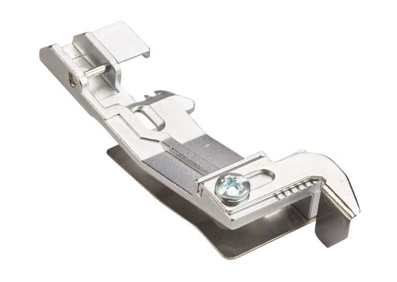 The Gathering Foot allows individual layers of fabric to be gathered evenly. Likewise, a layer of fabric can be gathered and sewn together to a flat piece of fabric. This saves a great deal of time.