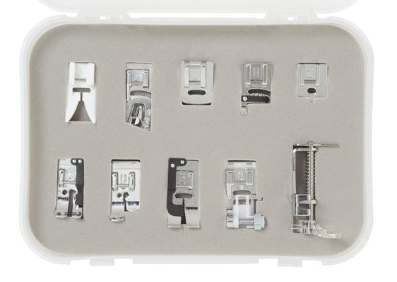 This set for the sewing machines b37 and b38 contains 10 useful presser feet for special stitches and sewing work.
