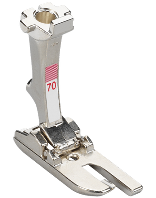 Lap Seam Foot #70 enables you to sew precise lapped and flat-felled seams in light and medium weight fabrics.