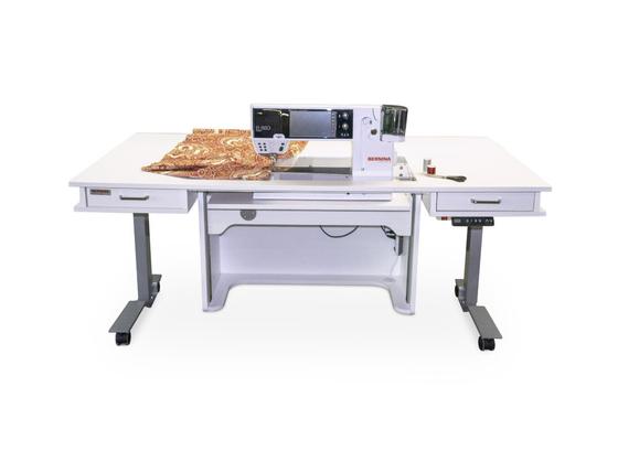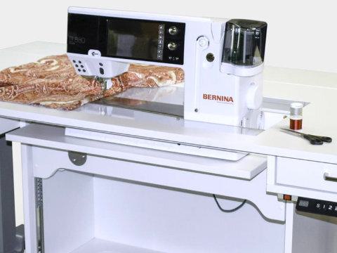 Need to cut large pieces of fabric? Just lower your machine to the storage position, replace the filler panel and you have a large 67” x 36” work surface.