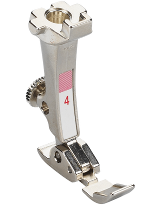 Zipper Foot #4 makes quick work of inserting zippers neatly and precisely. Its narrow, centrally placed toe allows Zipper Foot #4 to get very close to the zipper coils, enabling it to attach the fabric securely. The result is a perfectly inserted zipper with a consistent stitch pattern.
