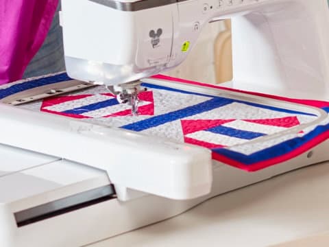 Embroider letters with yarn into a cool 3-D effect using the Couching Embroidery Foot. You can create upper- and lower-case letters (approx. 3” tall) and numbers; all characters are also resizable for even more flexibility.