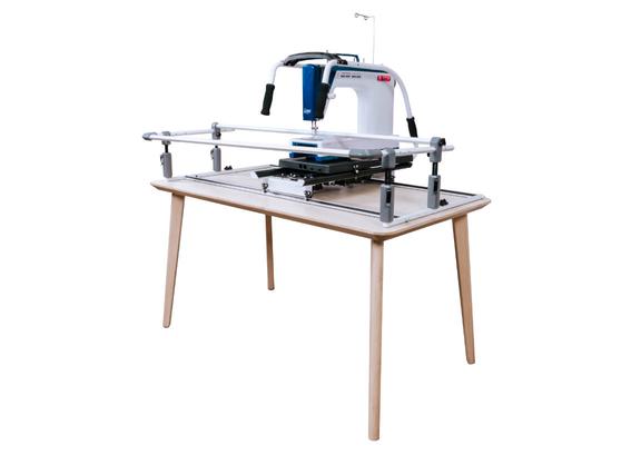 Works with any table or desk that is sturdy enough to hold 35 lbs plus the weight of your machine and large enough to support the base cutie frame dimensions: 27”d x 52”w