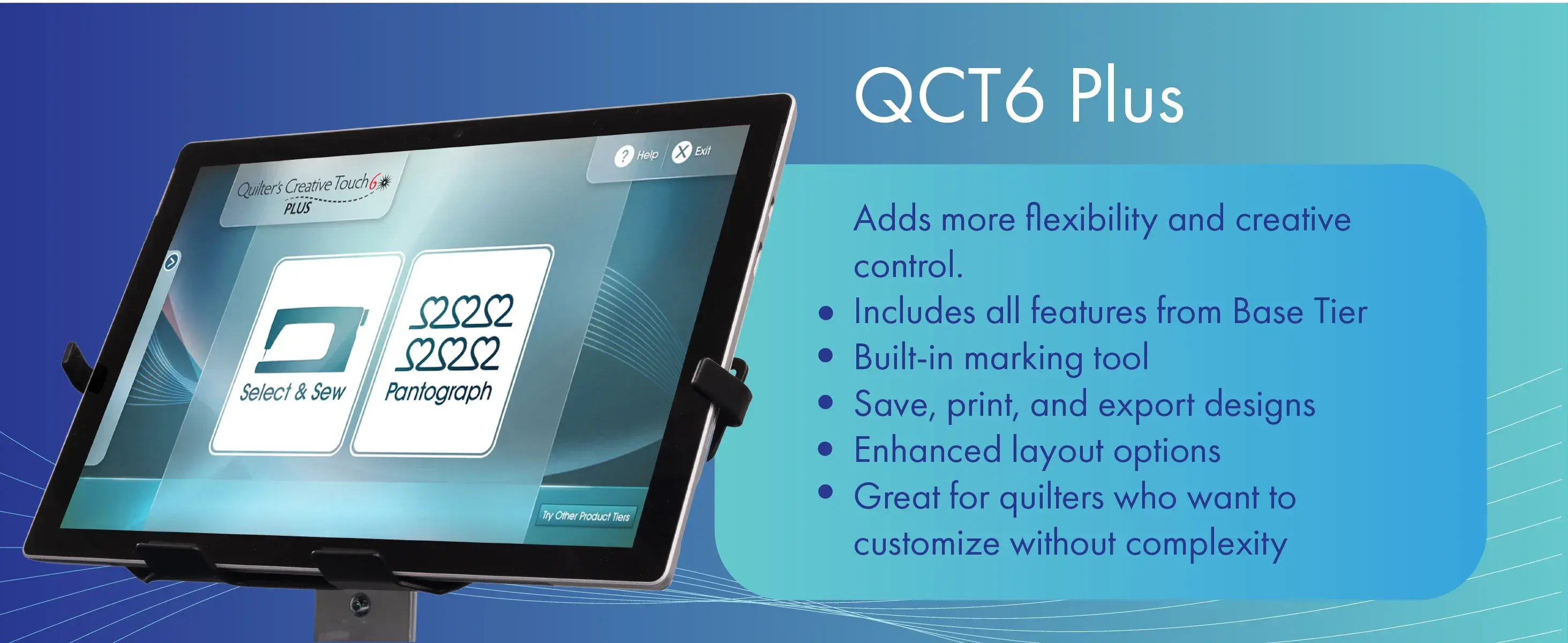 QCT6 Plus gives you more creative control over your quilted patterns with a built in marking tool and options to print, save, and export your designs.