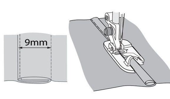 - Snap on the Flat-Felled Foot 9 mm Foot.