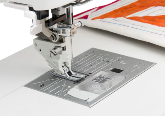 This foot provides superior visibility and is great for curves and precise topstitching. It holds fabrics firmly in sync with the feed dogs to achieve professional results. For use in combination with Professional Grade Needle Plate (HP).