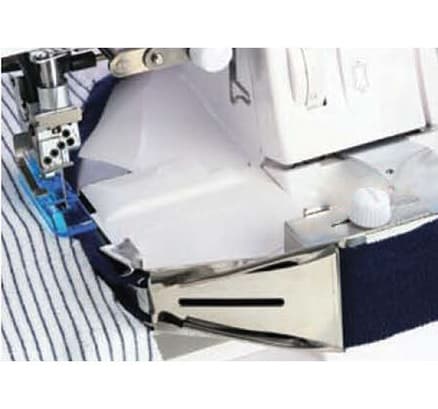 No need to pre-iron your bias strip; the Tape Binder Foot automaticaly folds a 1.5" bias strip at the same time it is applied to the fabric edge. It is the perfect finish for blakets, placemats and jackets. The binding is secured with teh Chainstich. Use the Tape Binder Foot with the Attachment Holder (Part No. 200813103).