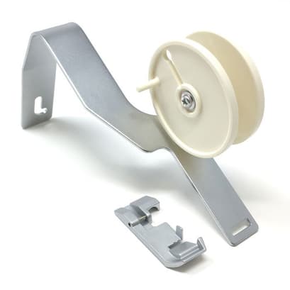 This attachment consists of a taping foot and a tap reel and is useful when sewing garments in knit or stretch fabric. It will help feed seem binding tap when sewin shoulder seams and armholes to prevent stretching in those areas
