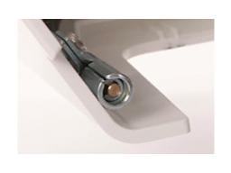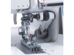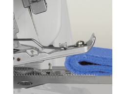 The upper knife arm can be effortlessly released with a press of a button to provide more sewing room. This is useful when working in coverstitch mode, or when do not need to trim the fabric edge.